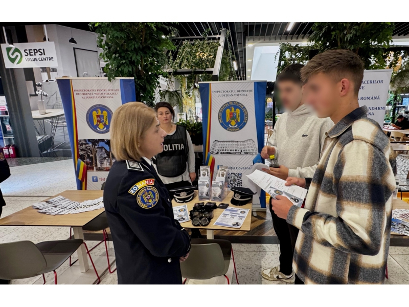 Polițiștii au fost prezenți în mijlocul comunității la complexul Sepsi Value Centre din Sfântu Gheorghe, unde au organizat un punct de informare pentru cei care au dorit să afle mai multe despre admiterea în școlile de agenți de poliție. Vizitatorii au putut discuta cu polițiștii despre activitatea profesională, etapele carierei și oportunitățile oferite de această meserie.
