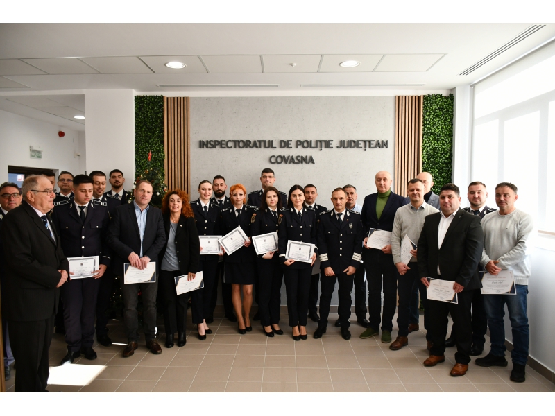 Marți, 16 decembrie 2025, Inspectoratul de Poliție Județean Covasna a organizat un eveniment festiv dedicat recunoașterii și aprecierii activității unor polițiști care, de-a lungul carierei, și-au pus profesionalismul, experiența și devotamentul în slujba comunității, precum și colegilor aflați încă în activitate, care s-au remarcat prin rezultate deosebite și implicare exemplară.