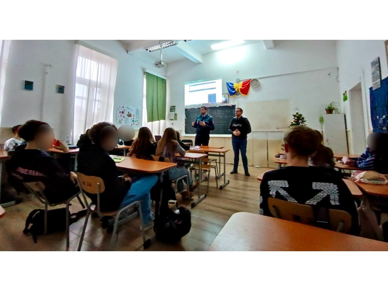 Marți, 10 decembrie, polițiștii de prevenire au desfășurat noi sesiuni educative la Colegiul Național „Mihai Viteazul” din Sfântu Gheorghe. Aceste activități se înscriu în demersurile constante ale polițiștilor de a sprijini elevii în adoptarea unor comportamente responsabile și de a contribui la crearea unui mediu școlar sigur.