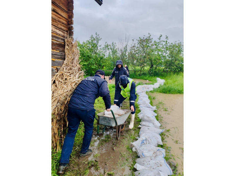 Polițiștii au intervenit în sprijinul comunității, unde apele au închis drumuri, au izolat gospodării și au pus vieți în pericol. Principalele misiuni ale polițiștilor au fost pentru sprijinul pentru evacuarea persoanelor din zonele de risc, salvarea animalelor și a bunurilor, dirijarea circulației pe drumurile afectate și menținerea ordinii publice în zonele calamitate.
