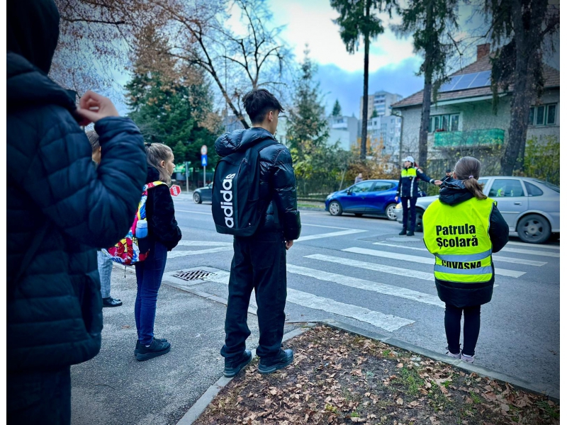 Elevii, îndrumați de polițiștii rutieri, participă la activități practice de supraveghere a traversării pietonale în zona unității de învățământ. Prin prezența membrilor patrulei școlare în trafic se urmărește ca șoferii, dar și pietonii, să fie mai atenți la respectarea regulilor de circulație.