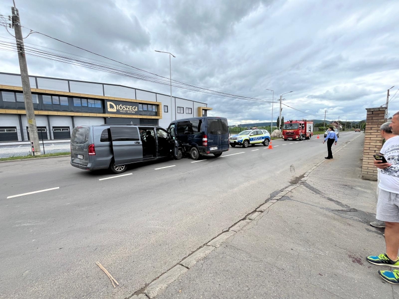 Accident în care au fost implicate două microbuze pe strada Constructorilor din municipiul Sfântu Gheorghe